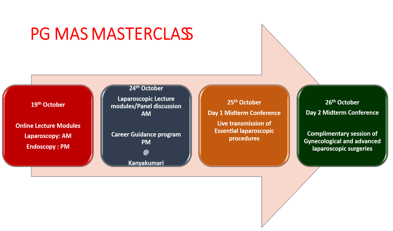 • To attend the Midterm conference on 25th & 26th October witnessing all basic and advanced laparoscopic surgeries with no additional cost!